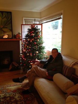 My husband somehow caught this spirit too. He didn't grow up with Christmas. He's a former Korean Buddhist monk, but today he strung lights all around the inside of our house and put colored lights around our fence. He also put the wreath on the door. It's getting quite festive.